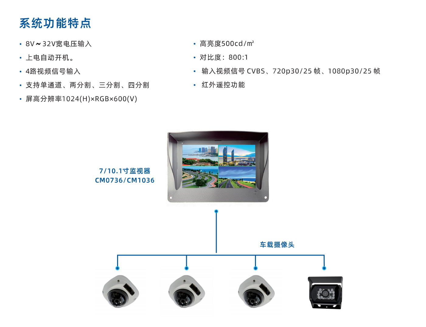 输入视频信号cvbs、720p30/25帧、1080p30/25帧
